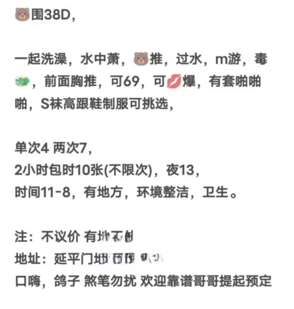 认识这个小姐姐已经很久了,以前在北二环那边,后来搬走了。人很漂亮,服务也好,乳房很敏感,没有风尘气息 ...